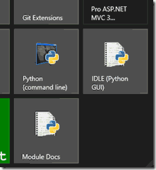 - Once you’ve successfully run the Python installer, you should see the following icons appear in your start menu or if you’re using Windows 8 like me, on your home screen: